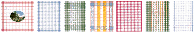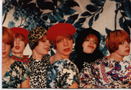 Selbstportrait - Fotocollagen Die Künstlerin präsentiert sich selbst, teilweise in mehrfacher Ausführung, vor verschieden floral gemusterten Hintergründen. Die Muster im Hintergrund wiederholen sich in der Kleidung. Dadurch wird der Blick des Betrachters irritiert. | |