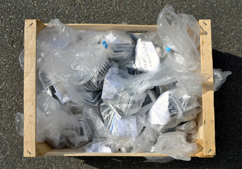 die abgebildete Kiste mit zahlreichen von ihm im Unterricht eingesetzten Dias zur Kunstgeschichte.